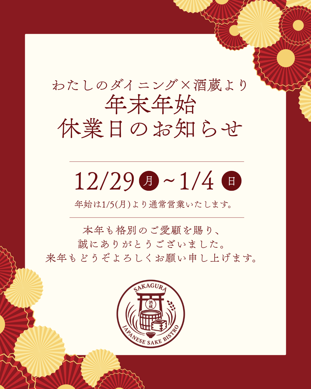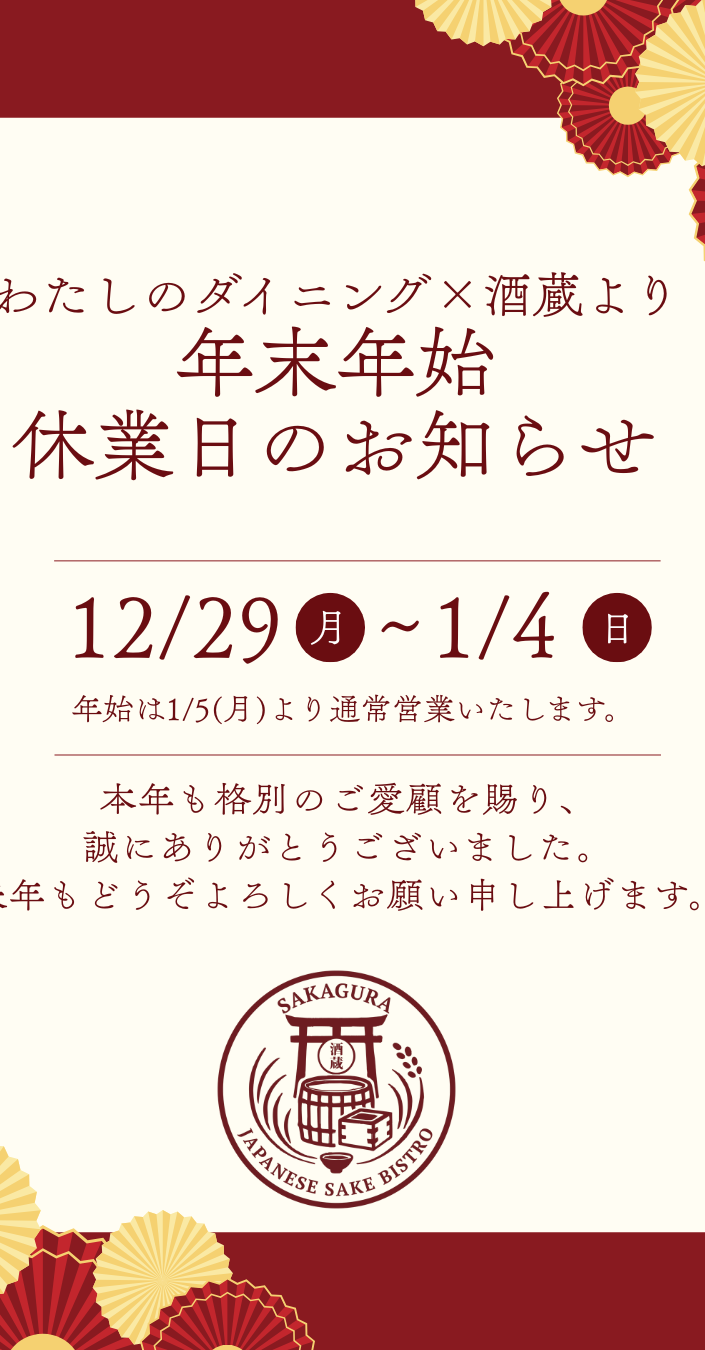 いつも「わたしのダイニング×酒蔵」をご利用いただき、誠にありがとうございます! 早いもので、2025年も残すところあとわずかとなりましたね✨